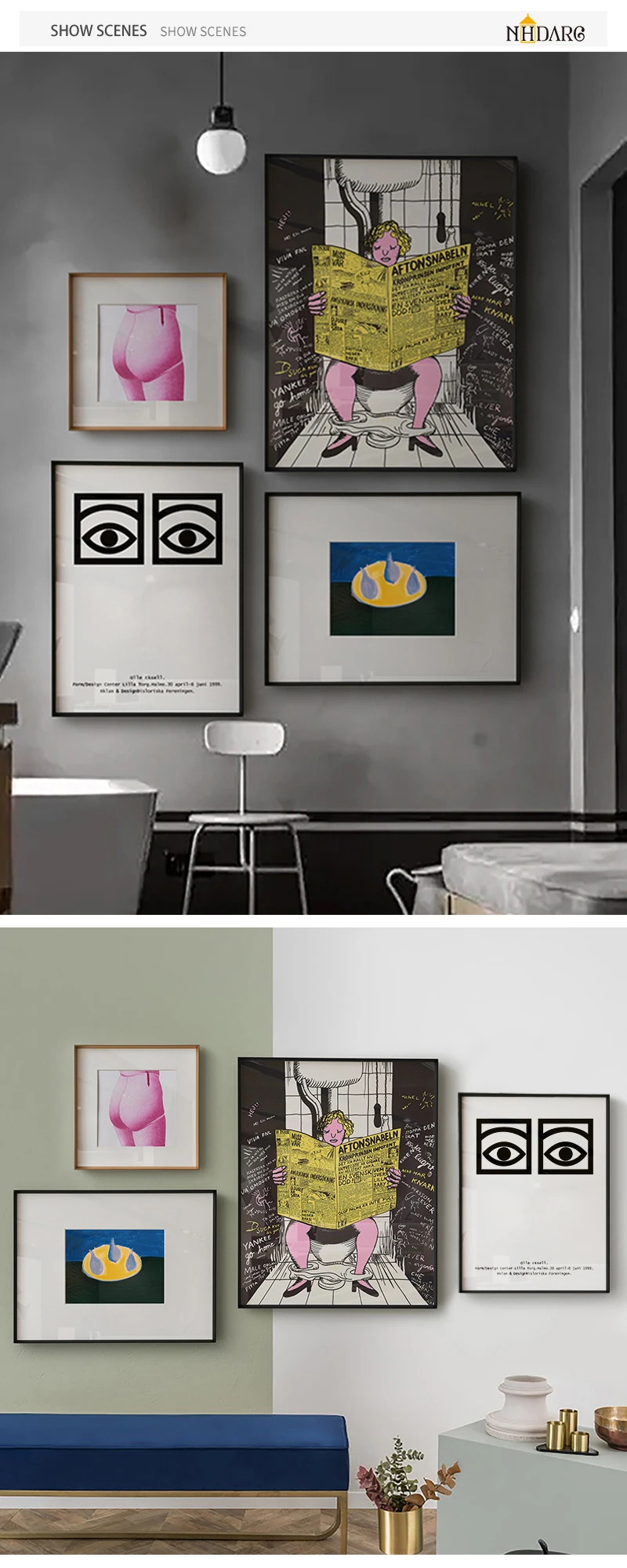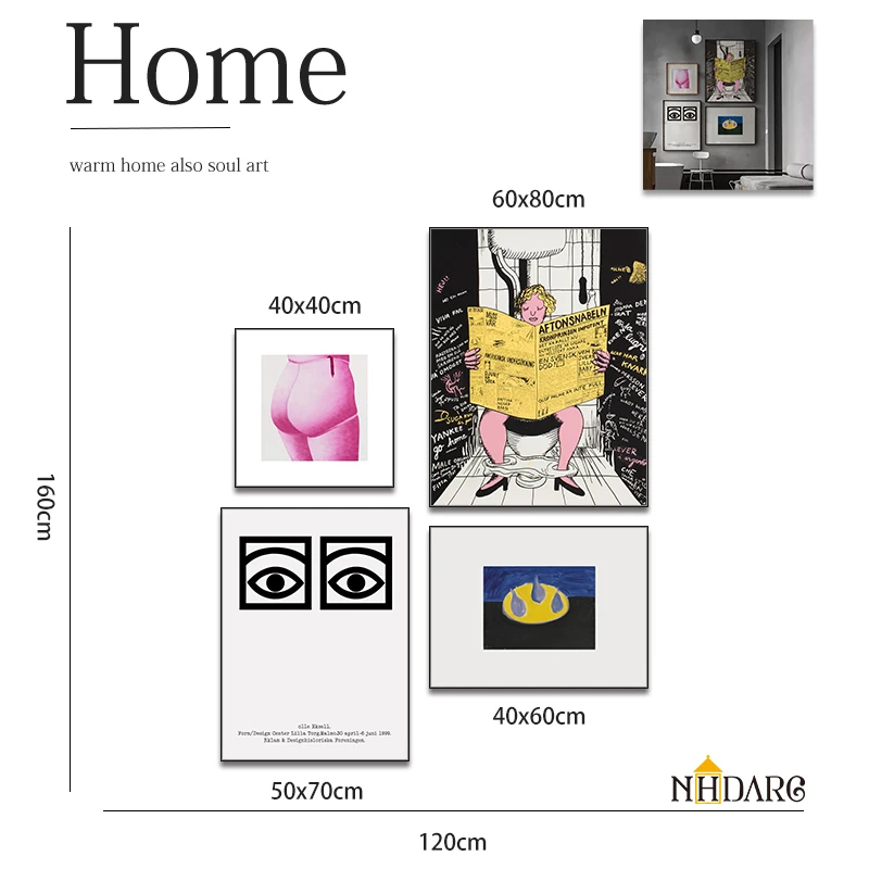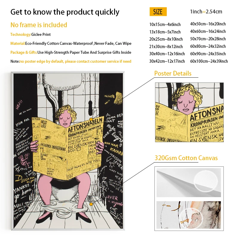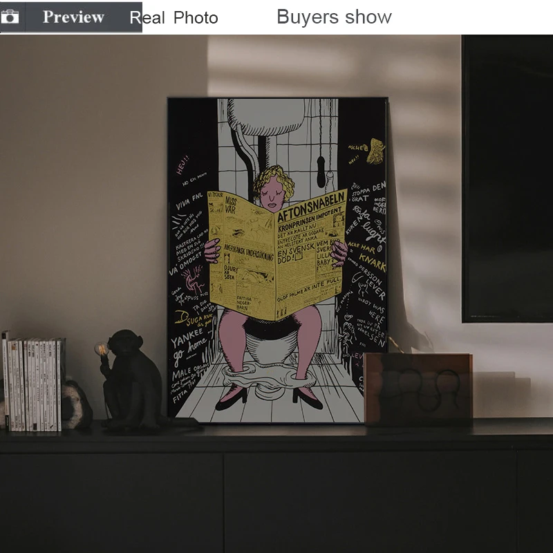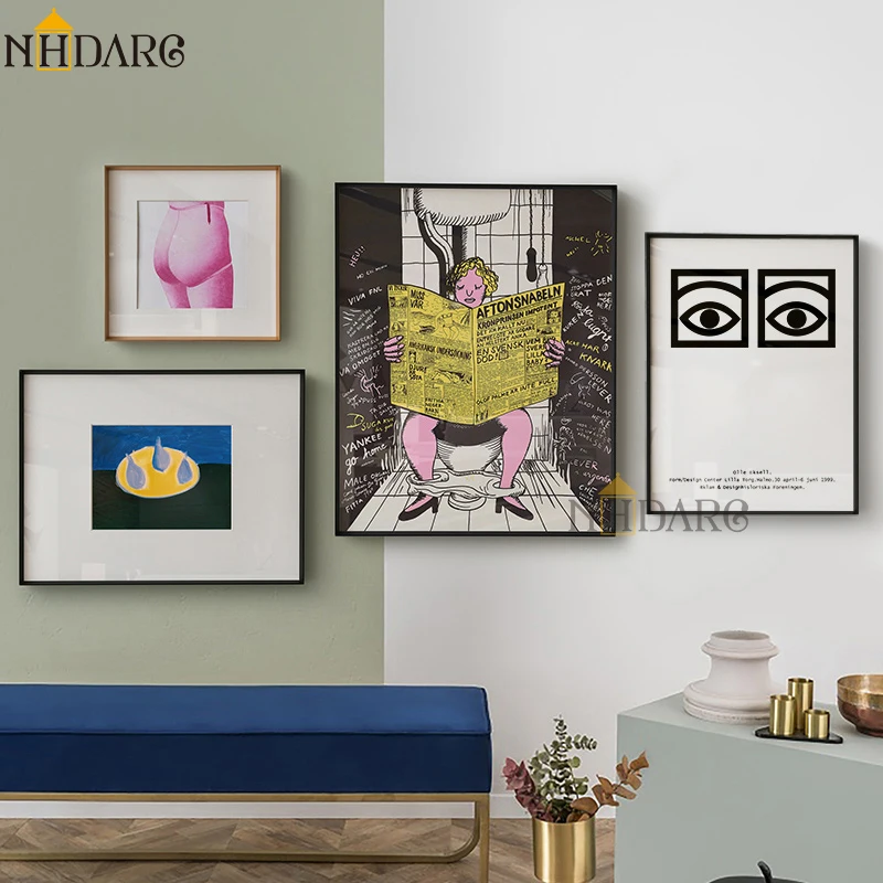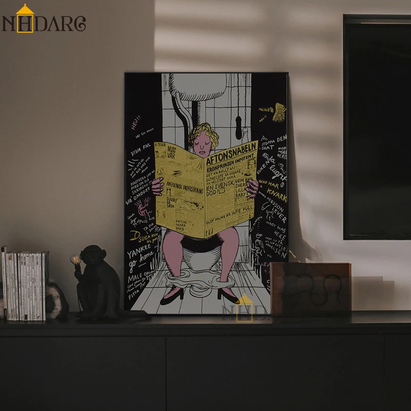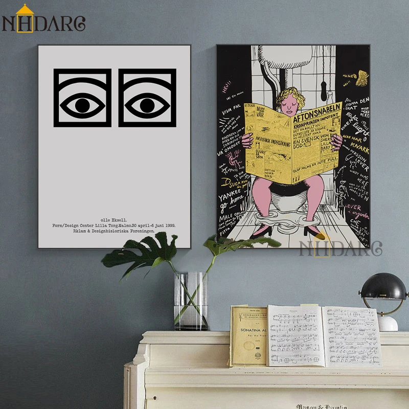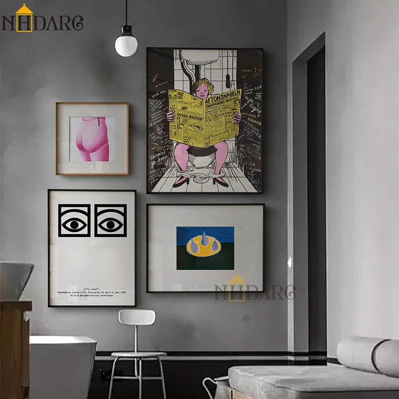 Bathroom Toilet Newspaper Eyes Wall Art Poster Canvas Paintings on The Wall Picture for Living Room Interior Room Decoration