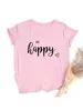Be Happy Print Summer Women Short Sleeve T-shirt Harajuku Tees Female Aesthetic Vintage Tops Camisas Mujer Tumblr Slogan Clothes