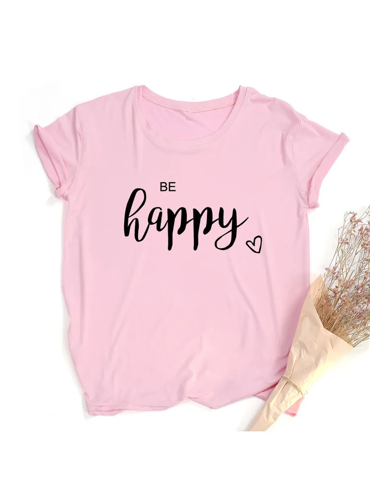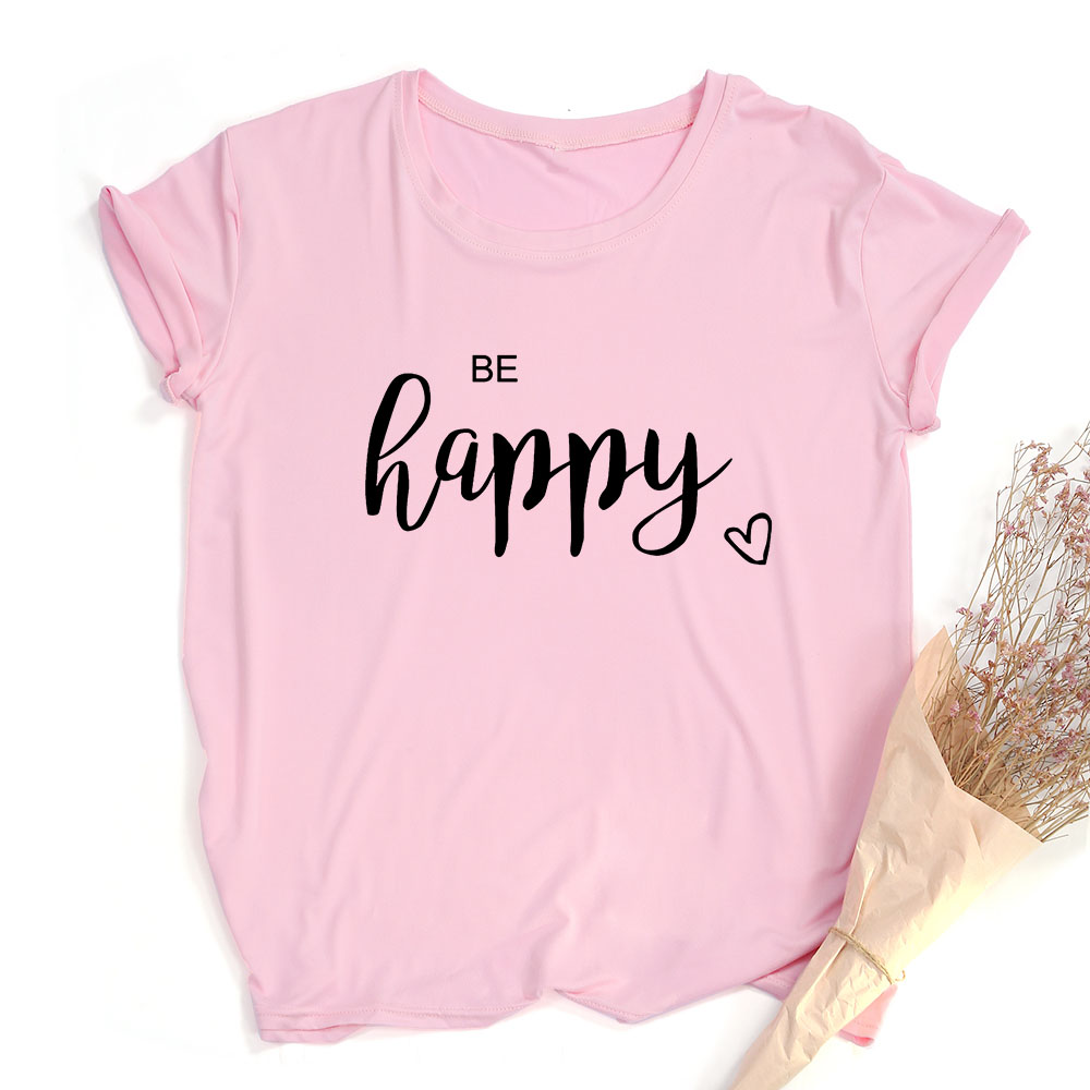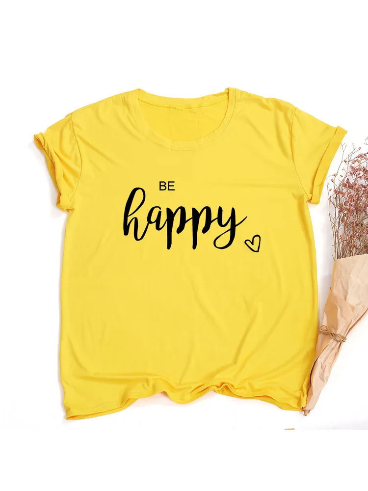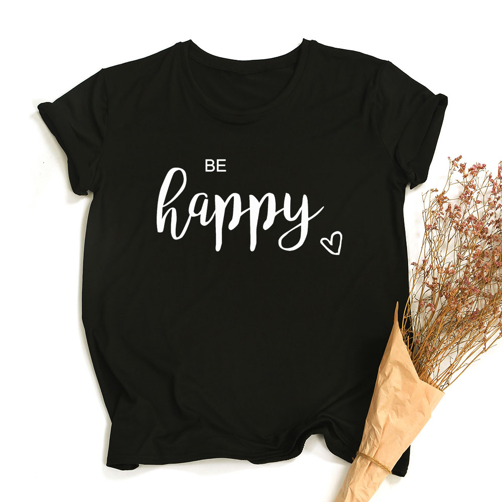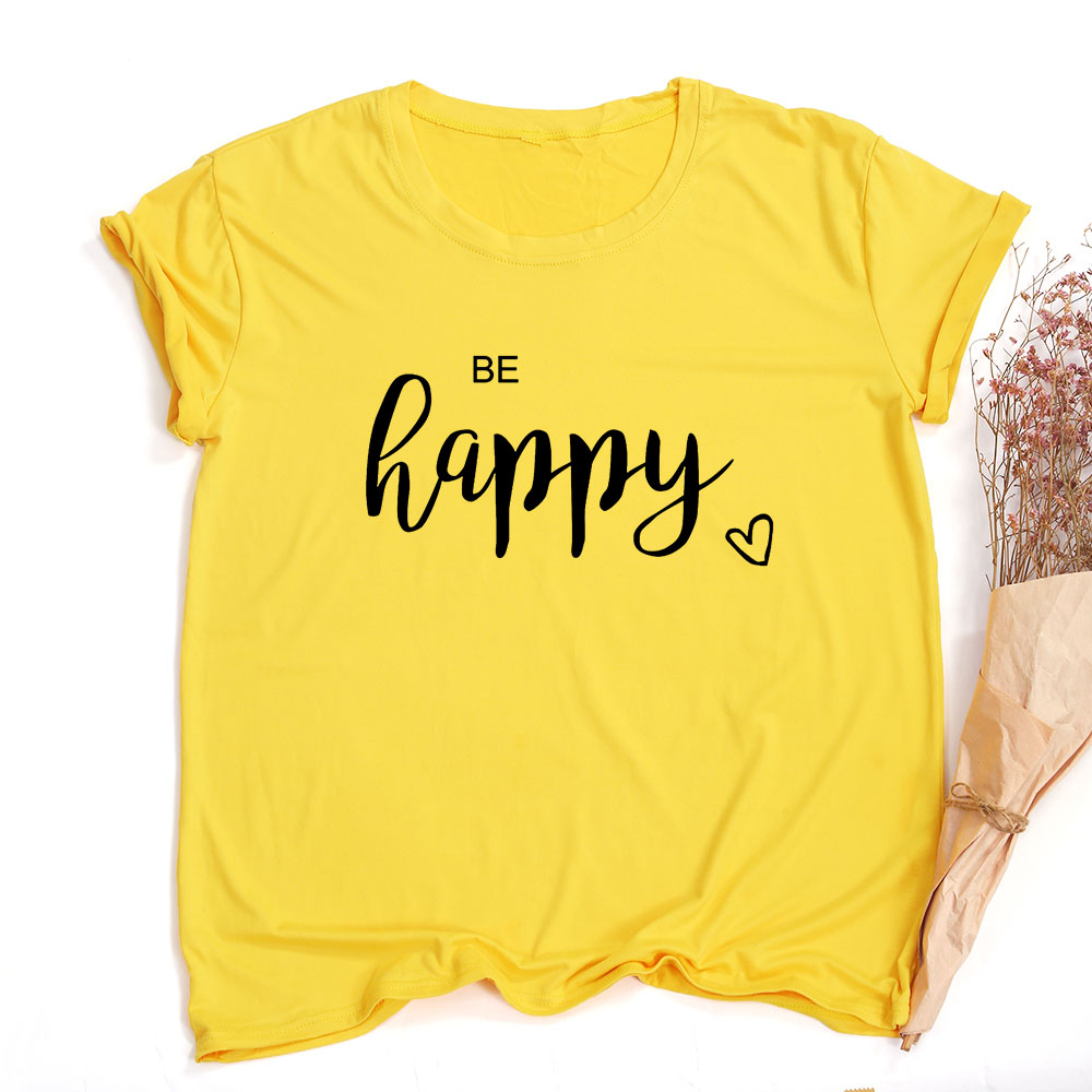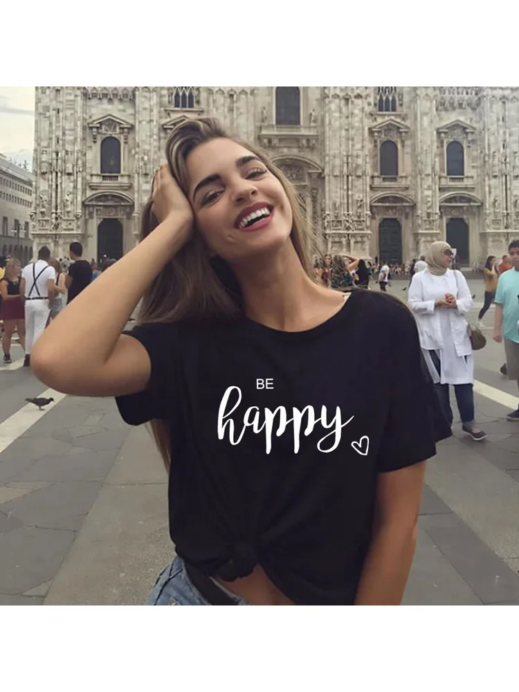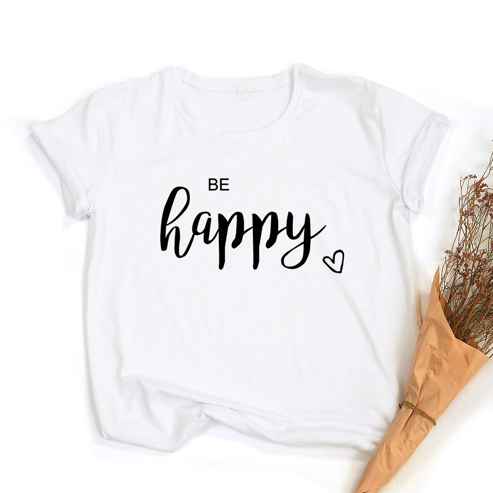 Be Happy Print Summer Women Short Sleeve T-shirt Harajuku Tees Female Aesthetic Vintage Tops Camisas Mujer Tumblr Slogan Clothes