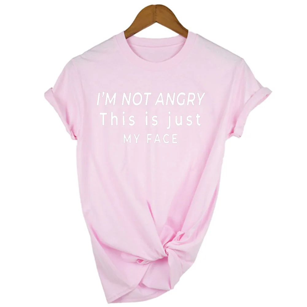 I’m Not Angry This Is Just My Face Letters Women Tshirt Short Sleeve Casual T Shirt Lady Yong Girl Top Tee Drop Ship