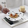 Korean Striped Polka Dots Ceramic Plate Fashion Irregular Tableware Spaghetti Dinner Plates Dessert Cake Dishes Serving Tray