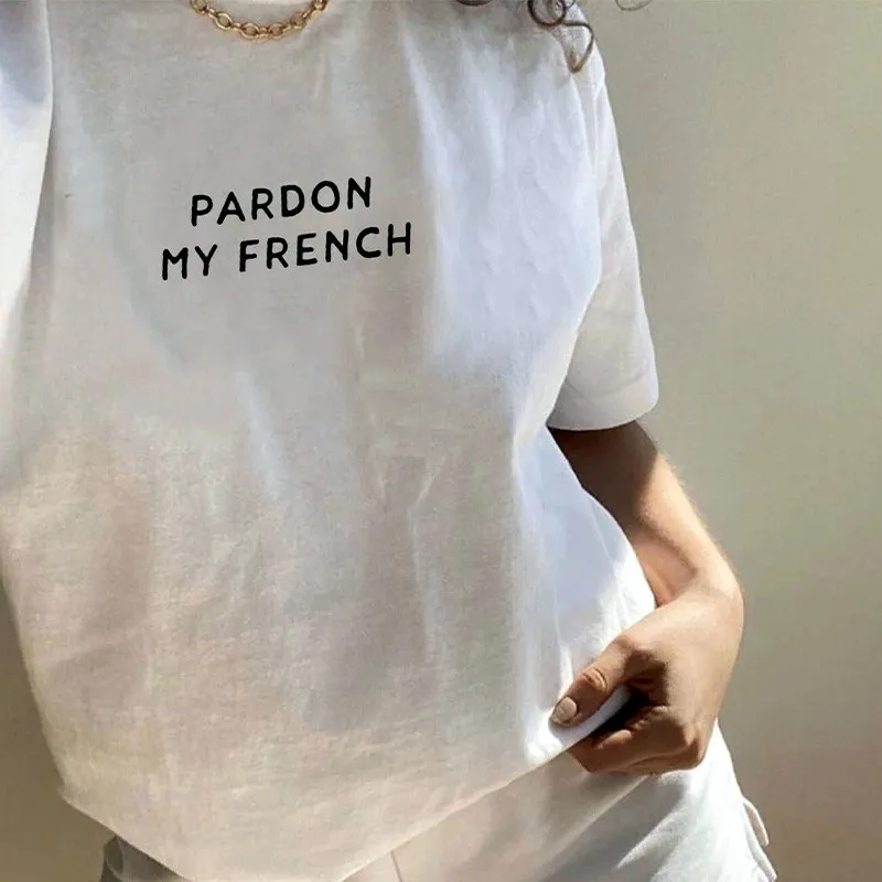 Pardon My French Letters Printing Women Summer Casual Short Sleeve T shirts Short Sleeve Loose Cotton Crewneck Basic Tops Tees