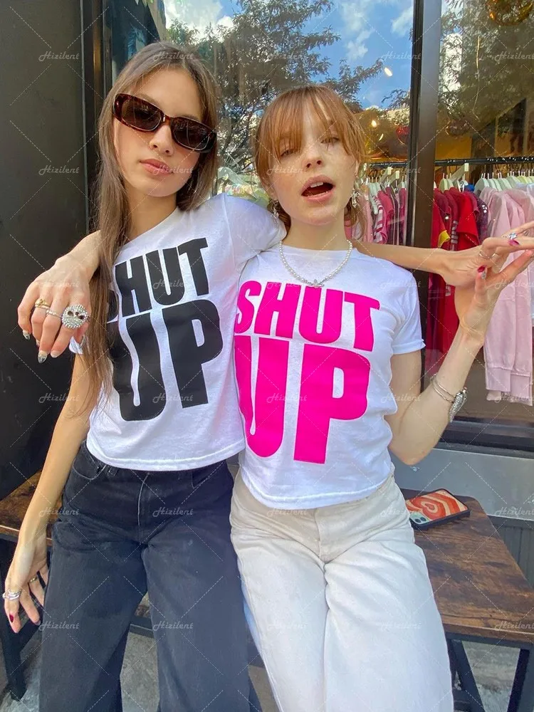 Streetwear Print Slim Clothes T-shirt emo Vintage Grunge Kawaii Graphic Aesthetic Women Crop Tops Harajuku Y2K Goth Short Sleeve